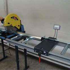 - Bras en fonte très résistant, chariot supportant la tête de scie guidée par 4 roulements à billes, assurant précision et longévité de la machine