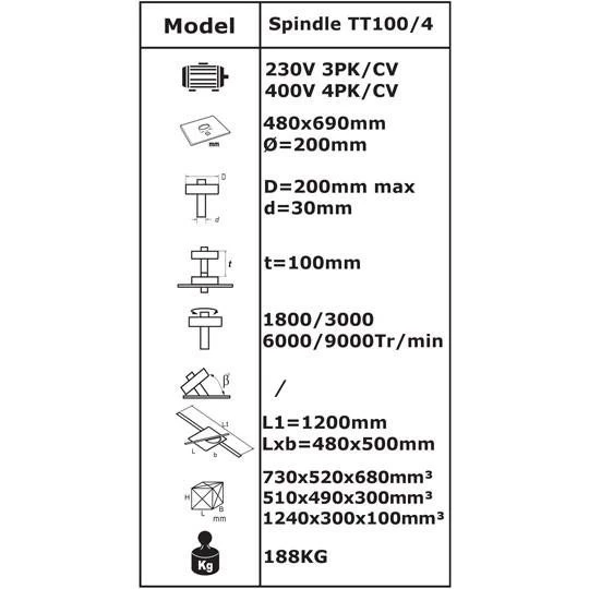 Tendotools TT100/4 Fraiseuse 230 Volt 3HP